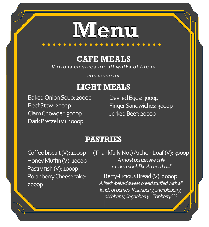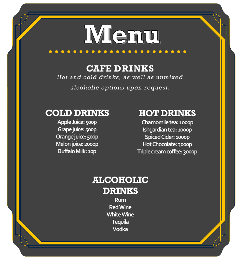 - Quest items marked with Required are items that are used towards the venue's menu items in the hopes of helping us increase the profit margin so we can be able to OOCly provide pay for all staff in the near future and hopefully, be able to pay OOC for quests.. If this is something you are not comfortable with, the quests not marked with Required will only have you trade with the Quest Giver to confirm you have acquired said items but the Quest Giver will not accept them)