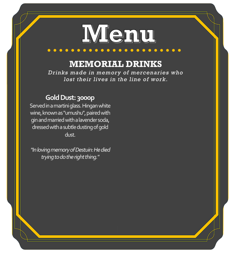 A legal organization, the Mercenaries Tavern provides a convenient quest hub for mercenaries looking to do honest work.Relax between missions, enjoy meals and a drink, and spar with fellow mercenaries.We are a RP-Heavy venue!Location: Malboro - Mist Ward 12, Plot 7